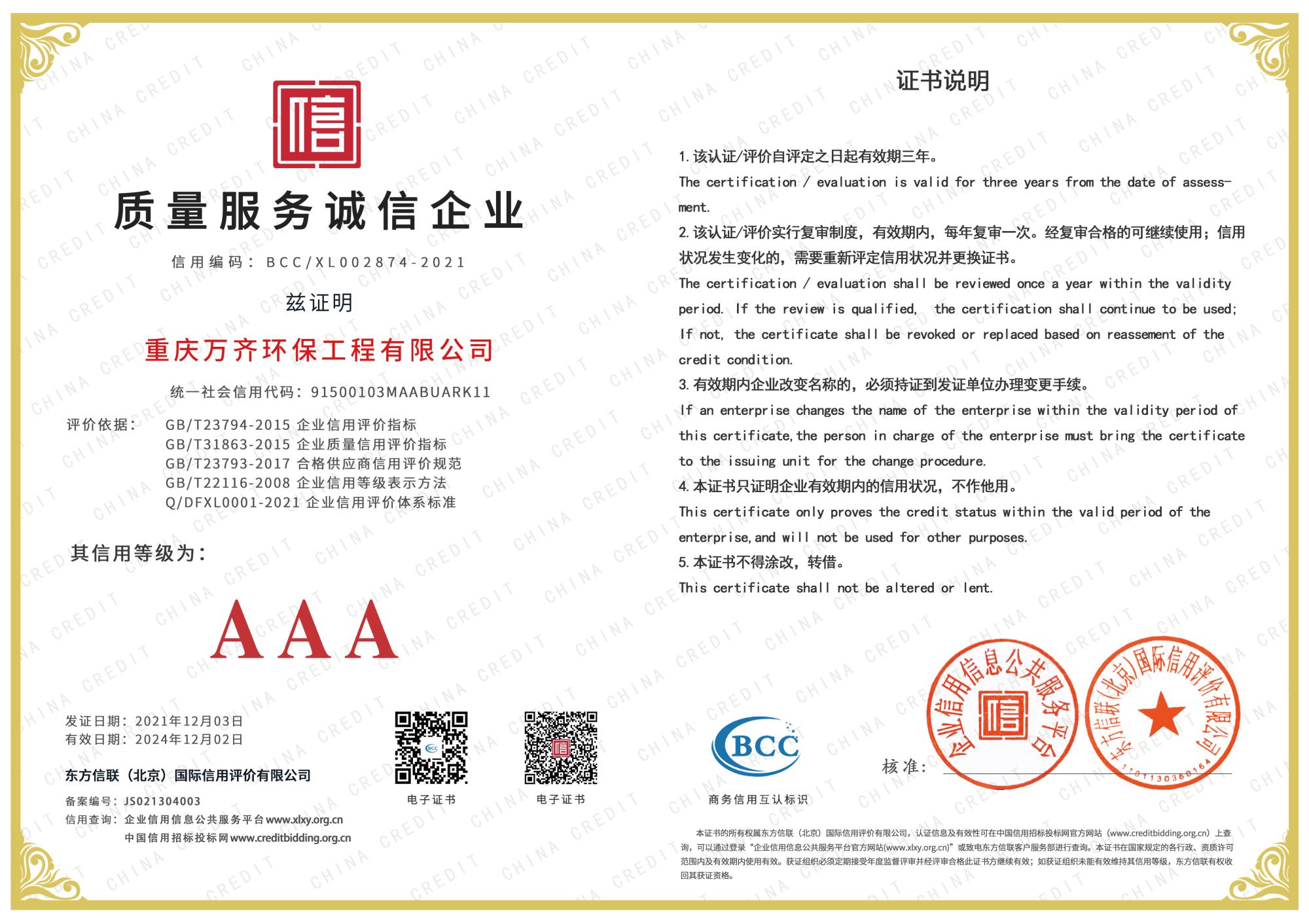 重庆万齐环保工程有限公司始终秉承严守标准,履行合同,工程优质,信誉至上。保证对工程负责,让业主满意为一体的专业环保企业。公司拥有一支主要由80后、90后组成的年轻有活力的团队,并不断在管理模式和经营模式上探索更迭,建立起了互相学习、鼓励创新的良好企业氛围,为公司的发展保驾护航。“每一个人都代表公司”的万齐精神已经深入所有万齐人的心灵深处,相信不久的将来,重庆万齐环保工程有限公司也将服务更多的企业和消费者。
